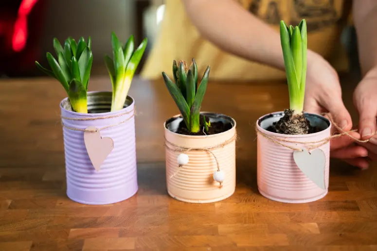 The result: I now have these colorful tin cans, filled with smiling green plants, on my balcony and kitchen counter. They give my home a rustic and colorful look. Every morning, I feel a refreshing sense of freshness when I look at them.
